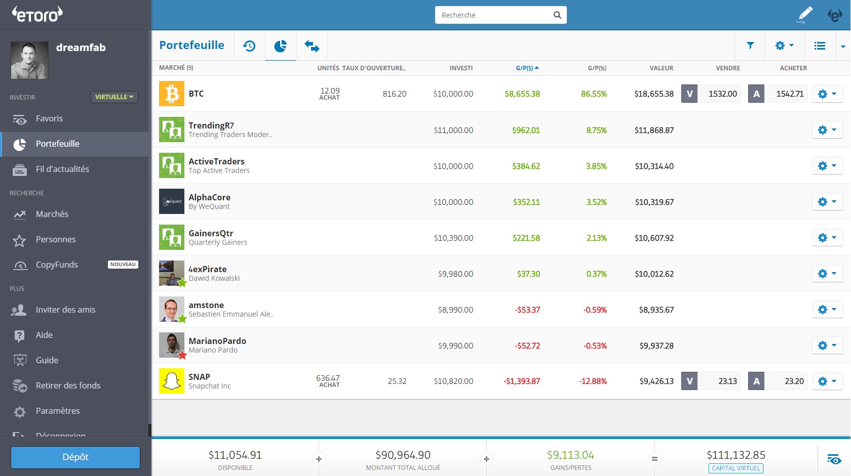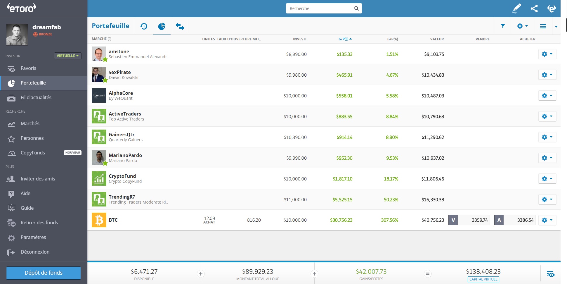 Re: eToro CopyFunds Suivi des Performances Top Traders & Mar