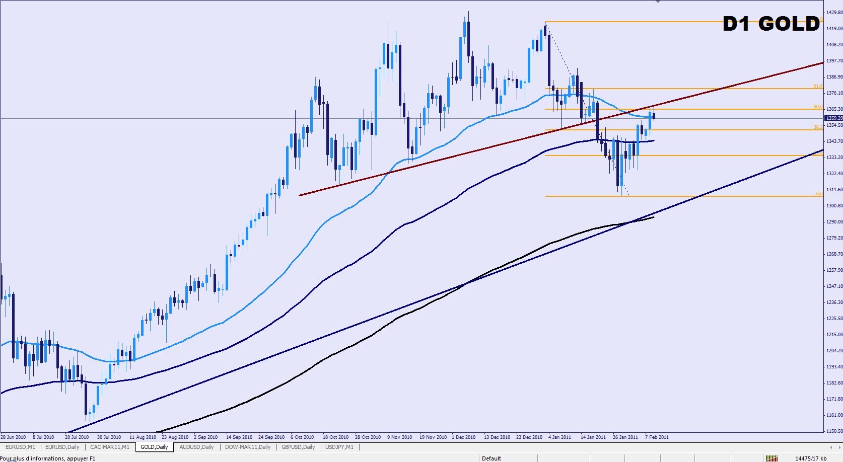 Retracement de 50% du mouvement baissier moyen terme observé ici en graphiques journaliers.