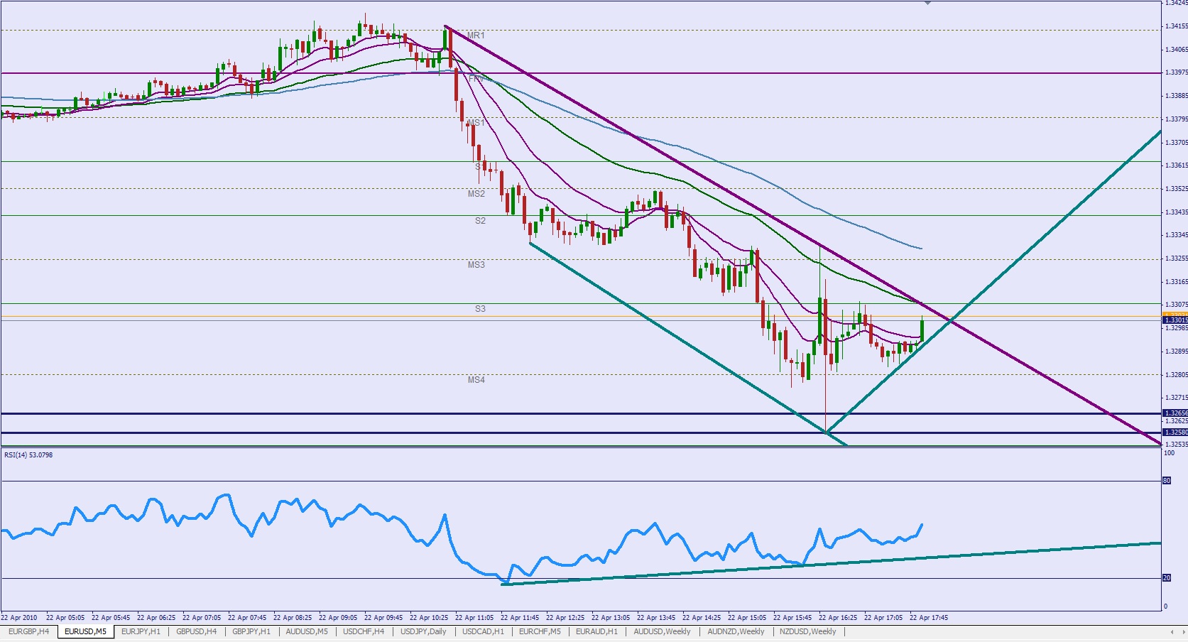 EURUSD Analyse 22/04/2010 en H4 (pour trader de H4 à 5 minutes) 7.00 am Paris, Bxl