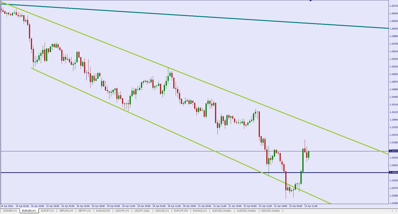 EURUSD Analyse 23/04/2010 en H4 (pour trader de H4 à 5 minutes) 6.00 am Paris, Bxl