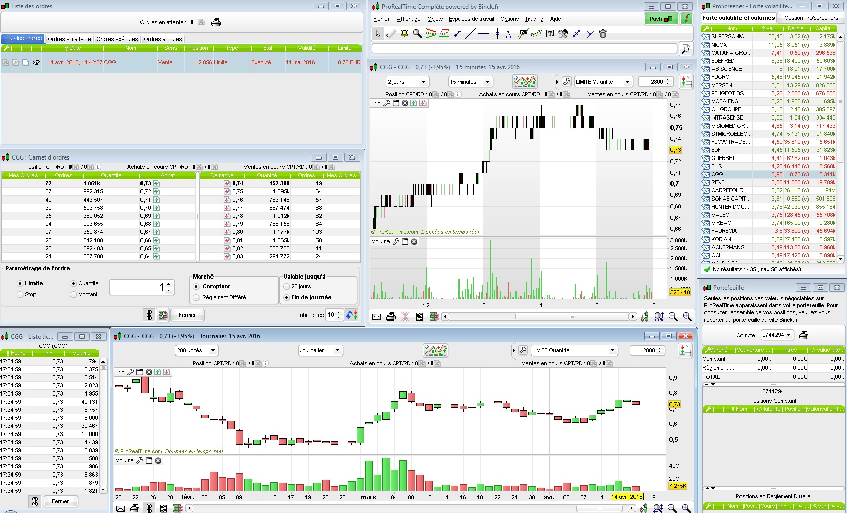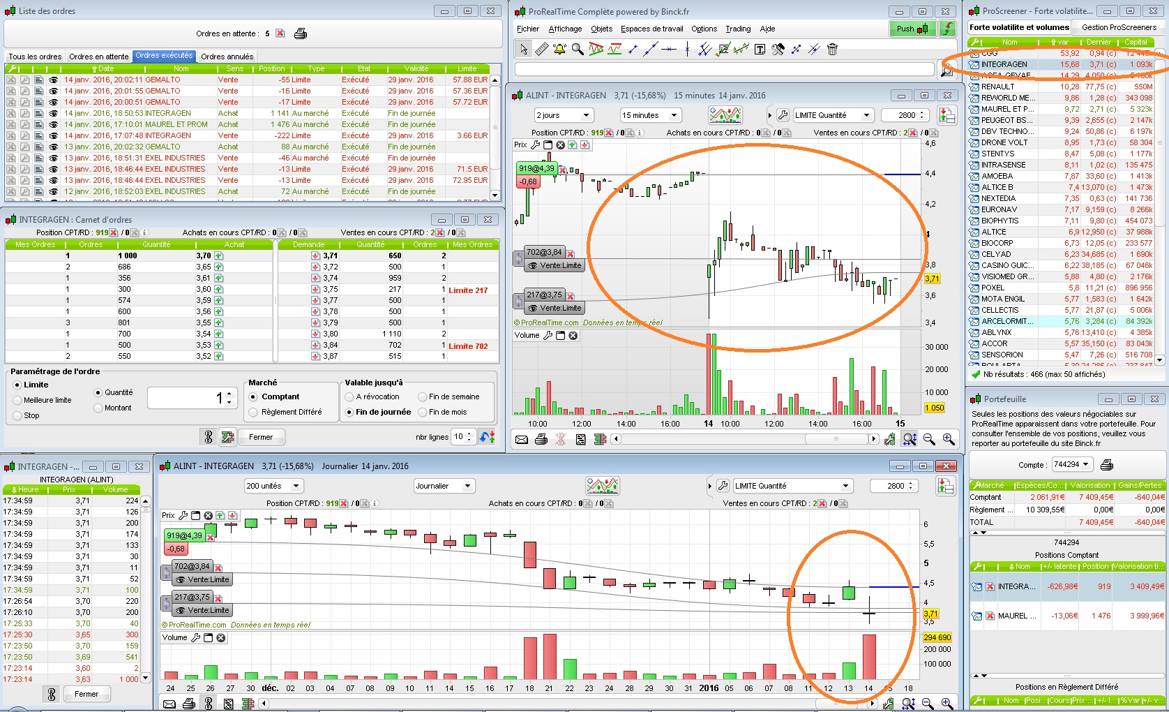 On verra demain ce que ça donne, on reste sur une belle impulsion sur l'ensemble de la journée. J'ai 3 ordres, 2 de 1000€ assez proche et le reste plus haut si l'action décolle demain.