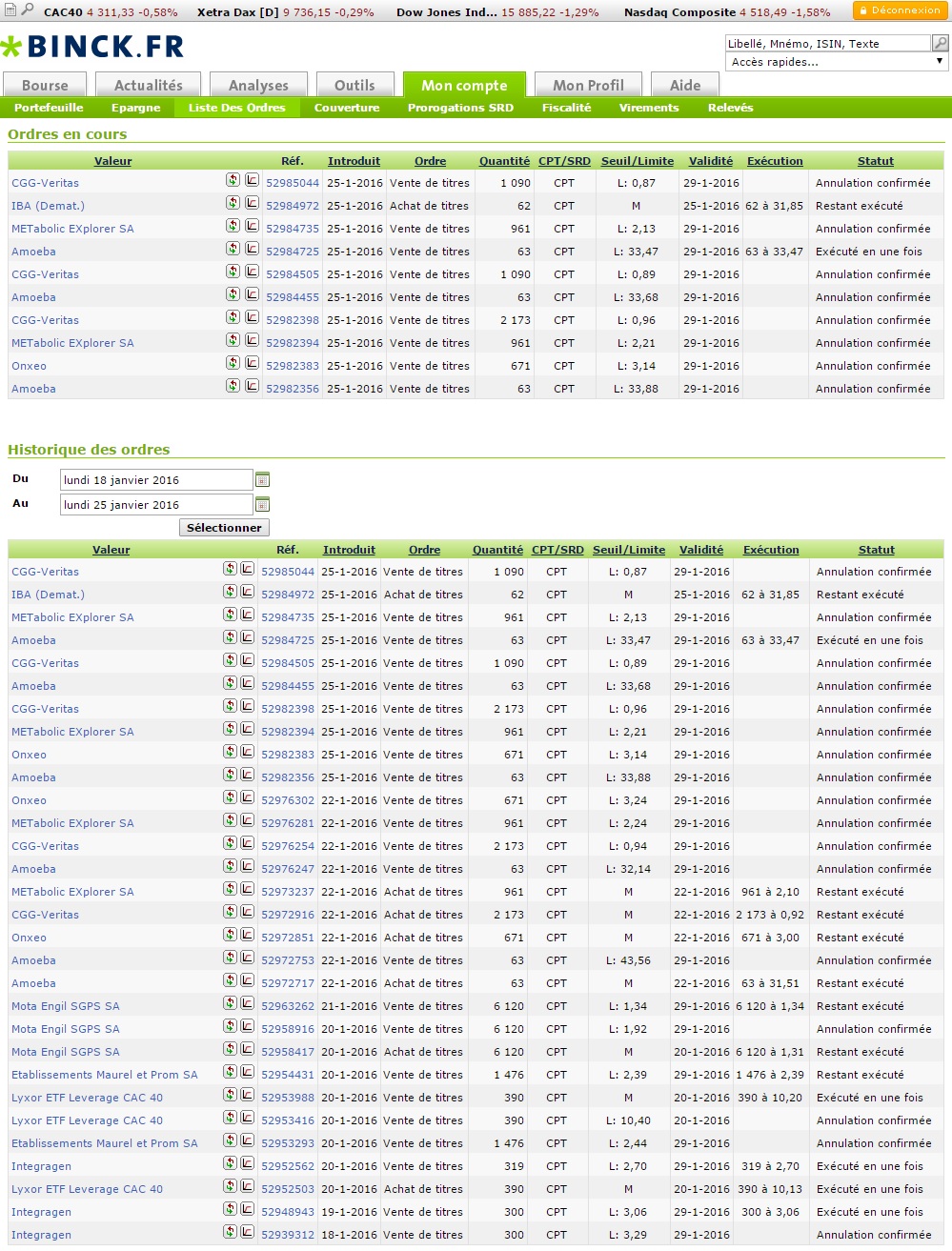 Je vais essayer de fermer à bon compte le plus de ces positions, afin de pouvoir réinvestir ce soir sur des titres intéressants.