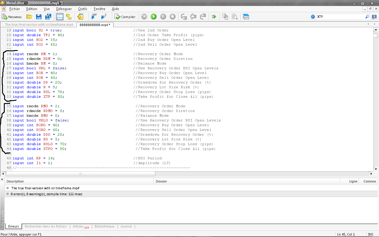 Désolé, je me suis aperçu de ça a coup de dizaine d' heure de BT dans tous les sens, me disant que quelque chose ne tourne pas rond, avec des ordres qui traine alors que la phylosophie de l' ea c' est si ça gagne c' est bien, rien a dire, si ça pert on récupère, en jouant avec le risque pour retomber sur ces pieds. mais avec cette histoire d' ordre qui traine, sans parler des error 130 parce trailing stop, la stratégie n' est pas encore au point. Attend, j' ai enfin trouvé la perle rare française capable de régler tout ça normalement. Un vrai parcours du combatant, parce sur mql il veulent etre vite payé, t' as pas le temps de vraiement voir s' il on baclé le travail ou non, et après y' as plus personne pour le service après vente. Ou alors repayer, et plus cher en plus puisqu' il te tiennent. Le monde normal quoi.
