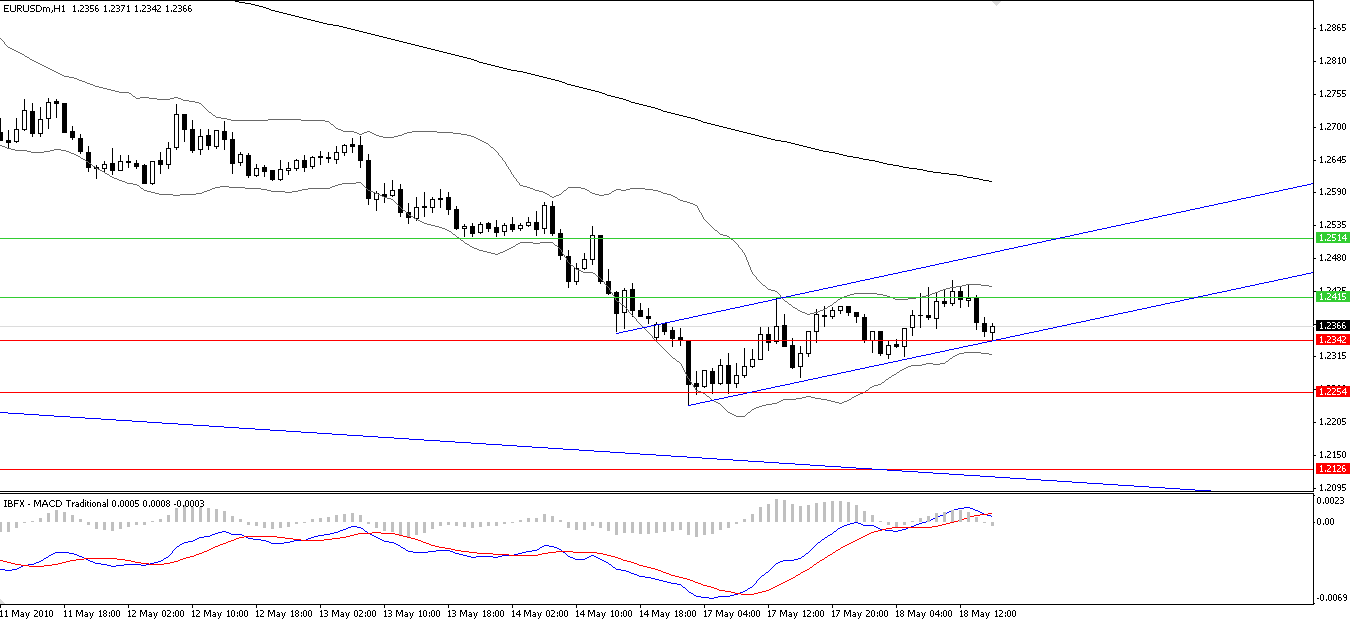 EURUSD Analyse 18/05/2010 en 4h à 9.30 am Paris (de 0.00h à 24h00)