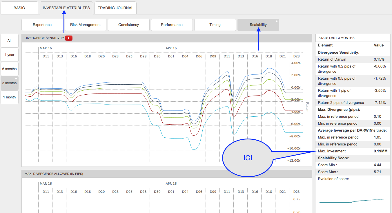 Mais du point de vue de l'investisseur, étant donné qu'il n'a aucun moyen de connaitre le montant total investit en cours, dans un Darwin, quel est l'interet d'avoir cette information? Il ne peut pas savoir si en investissant, par exemple, 10'000€ dans ce Darwin, il va depasser ce "Max. Investment x.xx MM" ...