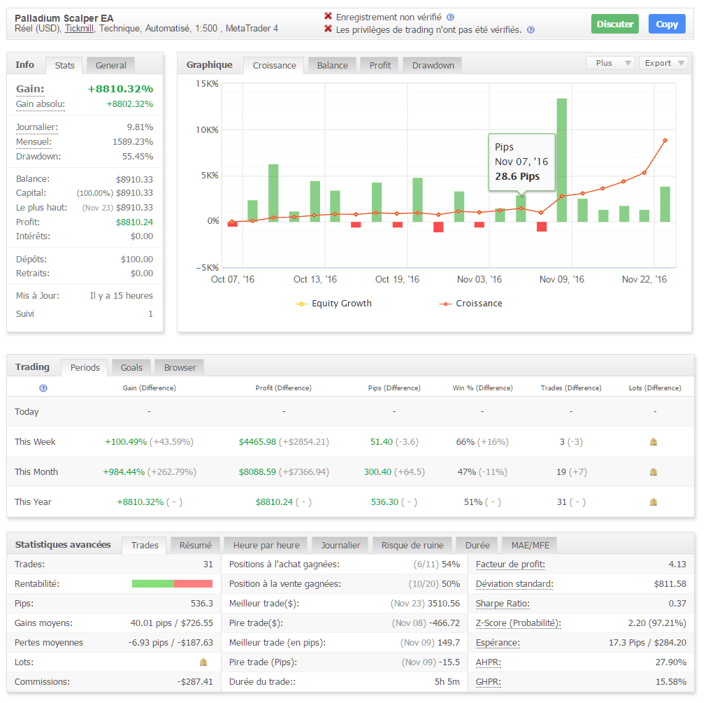 Alors j'ai ouvert un compte chez Darwinex expres qui sera lié avec myfxbook.