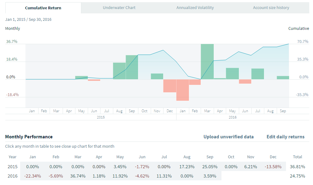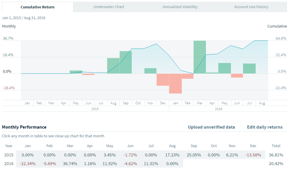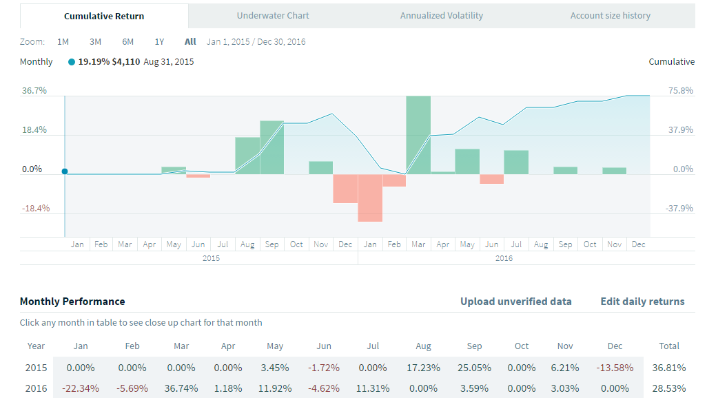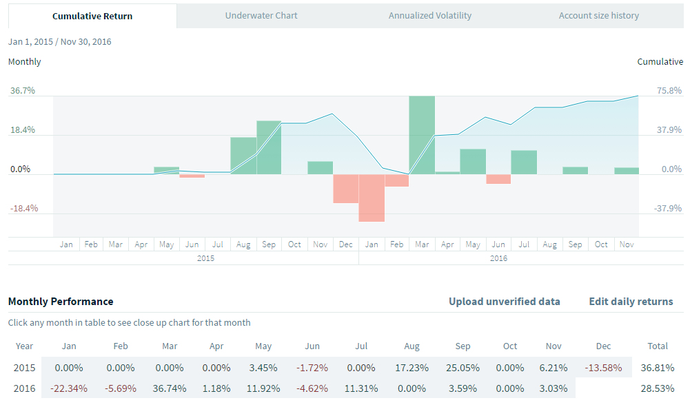 En attendant, j'ai téléchargé un fichier Excel que j'ai rempli pour avoir un compte avec un historique non vérifié. Bien entendu, les résultats sont donc dépendants de ma bonne foi. Cela n'a de toute façon pas beaucoup d'importance, le but étant de tester. J'ai considéré le début du trading pour ce compte en janvier 2015.