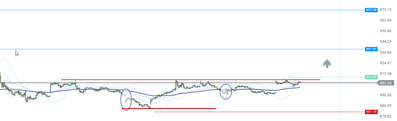 Pour l'instant je ne remonte pas le stop loss pas avant que le niveau 922,43 soit dépassé.