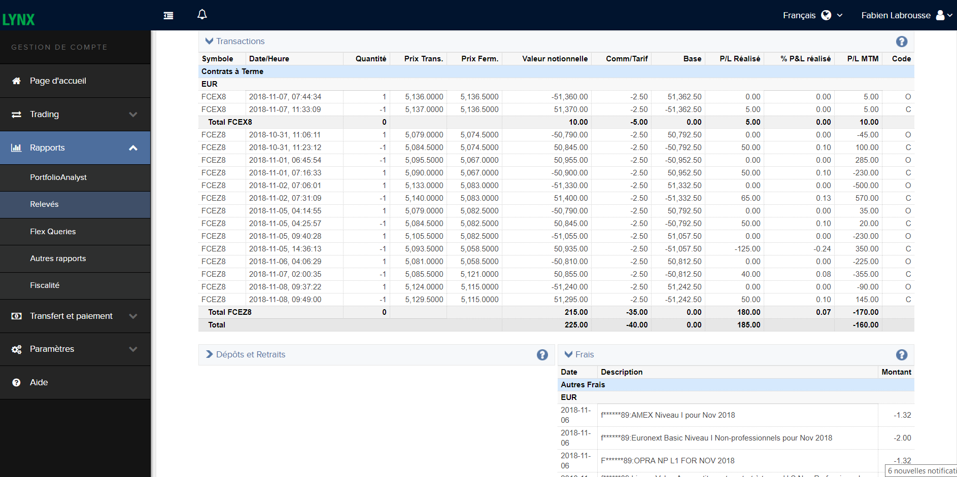 Dans son espace client, on peut obtenir des rapports très détaillés par rapport à son trading fournis par Interactive Brokers.
