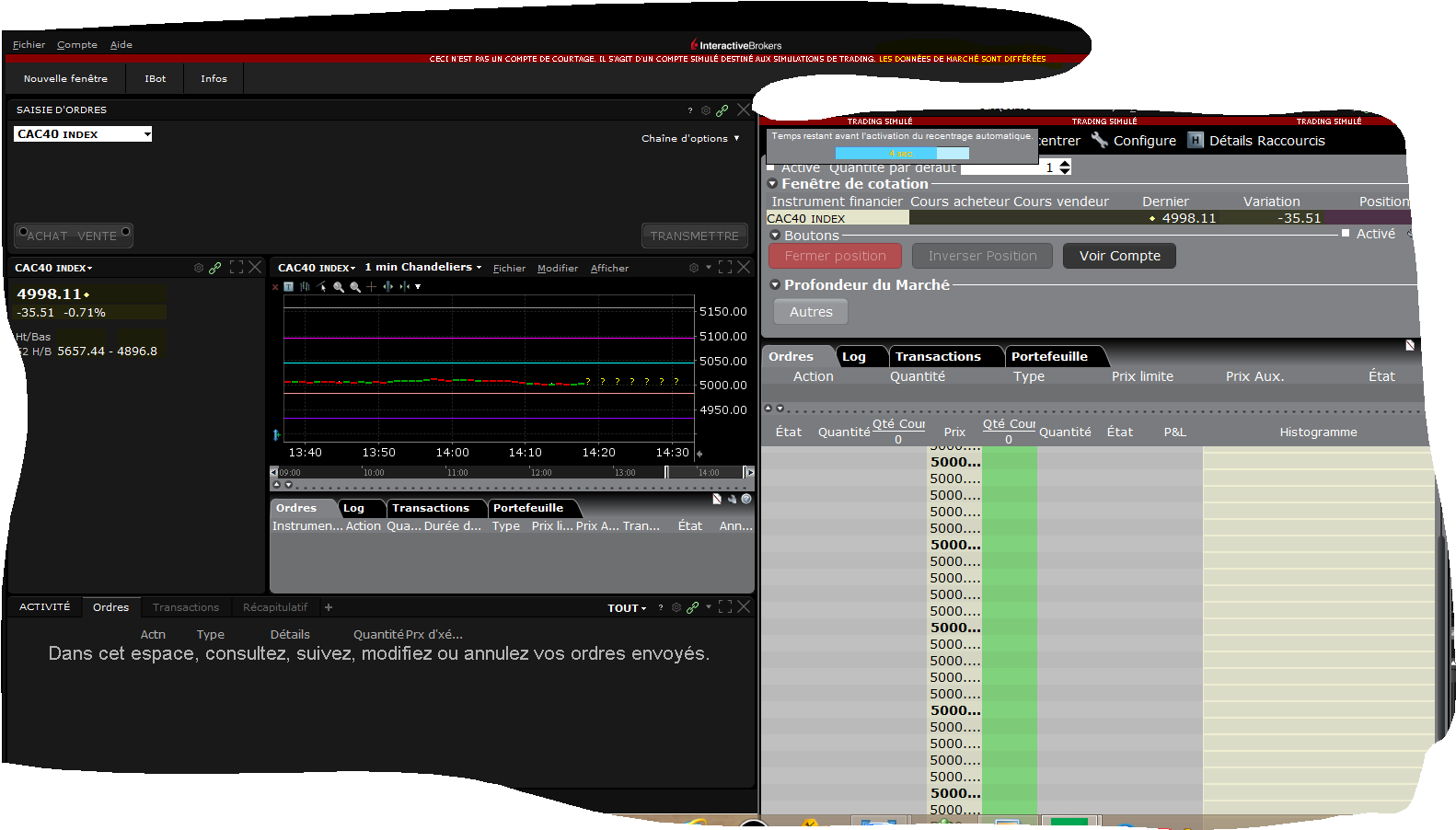 compte simu ouvert ,données de marché sont en différé ( pour le carnet aussi)