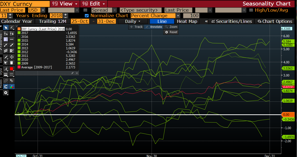 Un petit graphe réalisé sur Bloomberg qui montre la tendance du Dollar Index entre le 25 octobre et le 31 décembre :