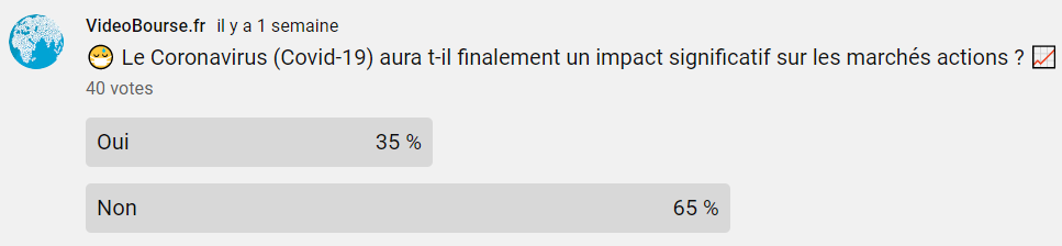 Et j'oubliais les résultats du sondage lancé lancé sur Facebook où là aussi les sondés avaient bien pressentis le retour de la volatilité sur les marchés par rapport au coronavirus :