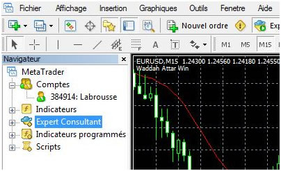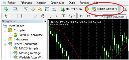 Cliquez sur « Expert Advisor » dans la barre des taches :