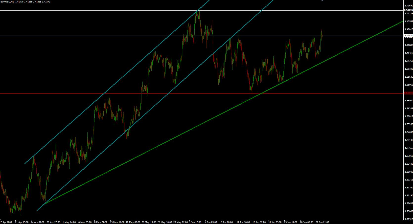 Les supports et Resistances sont donc des outils simples mais tout à fait indispensable dans l’arsenal d’un trader se basant sur l’analyse technique pour définir ses points d’entrées et de sortie. A l’heure où j’écris ces lignes (le 01/07/2009), j’utilise ailleurs uniquement les supports et resistances (horizontaux et obliques) pour placer mes points d’entrés. Je vous conseil de largement vous entraîner au traçage de ces lignes et de vous faire votre propre expérience quant à leur efficacité (en utilisant un compte démo bien sure).