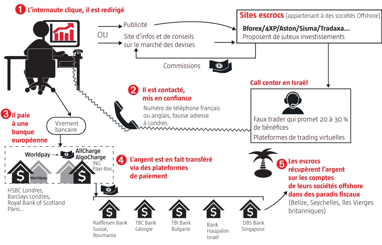 Un schéma, fait par le JDD (Journal du Dimanche) qui résume bien le principe des arnaques