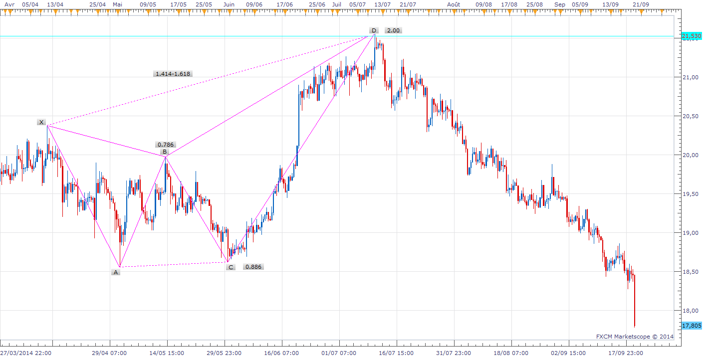 D=21,60$ soit "1.618% d'extension Fibonacci du mouvement XA"