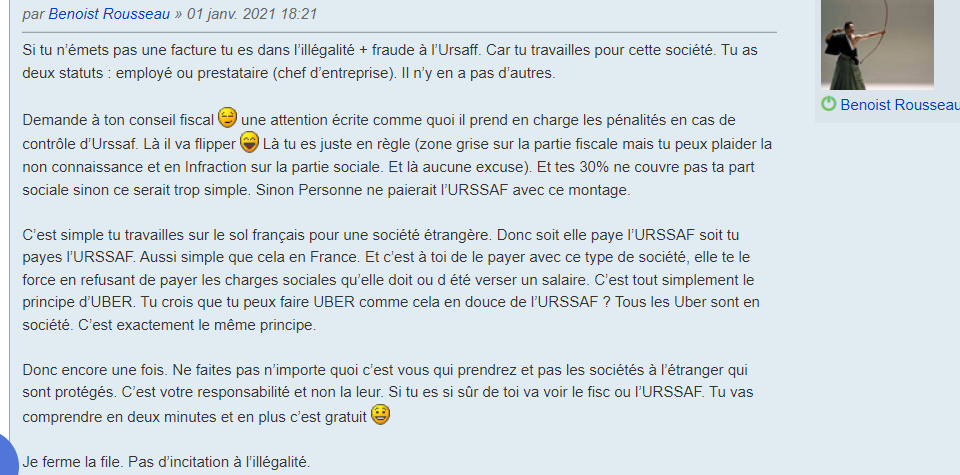 Il se pourrait même que se soit Benoist Rousseau, lui-même, qui, sous couvert d'un autre compte, se pose la question à lui-même dans son propre forum..