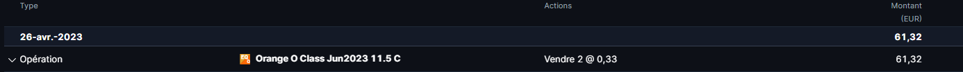 j ai cloturé ma vente de call TF1 ouverte en février qui malgré la forte baisse de tf1 n'a jamais été dans le positif alors que quand tf1 avait beaucoup monté j'ai eu un gros drawdown ( heureusement compensé par mes actions).
