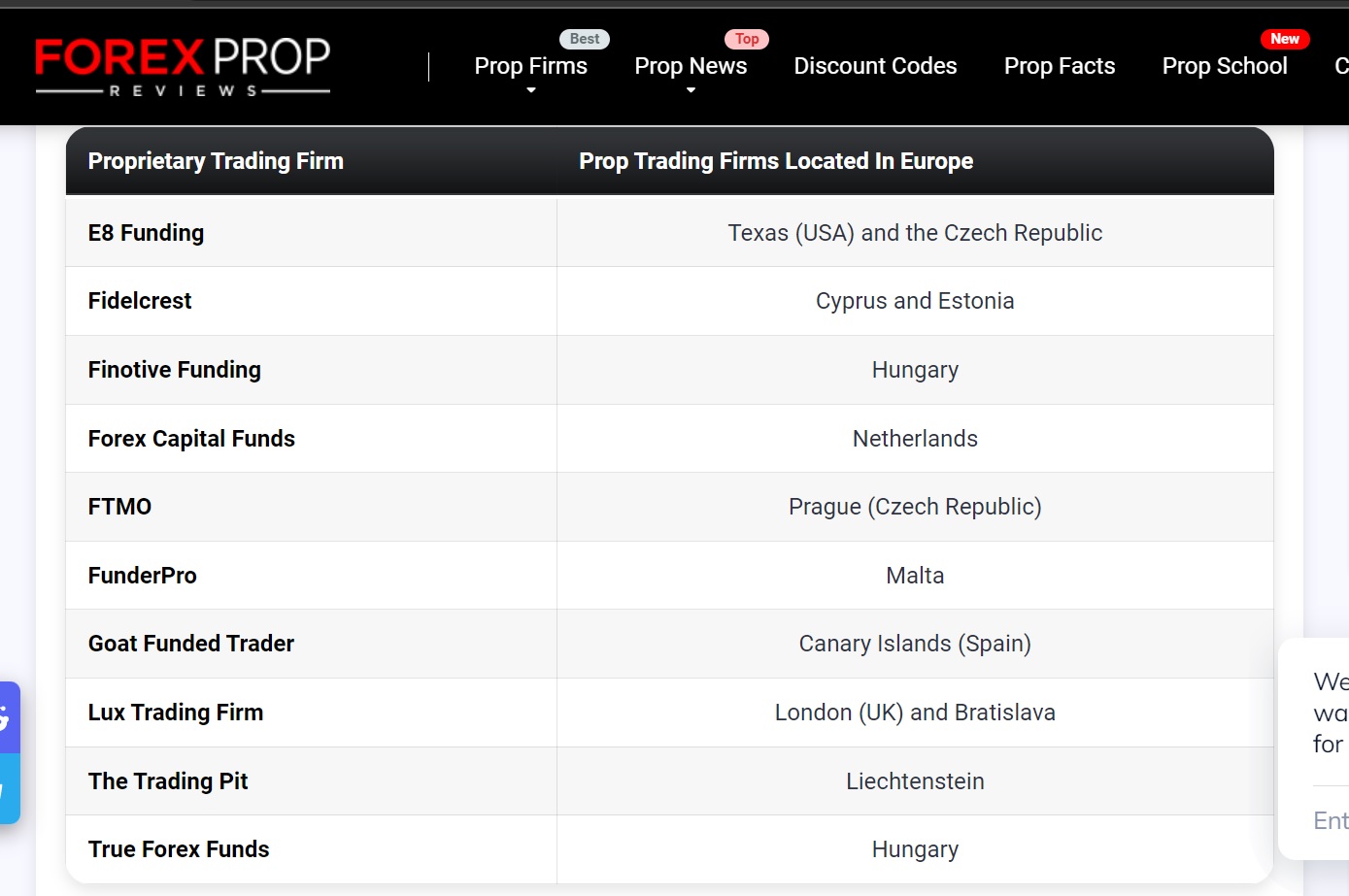 Voici la liste des Prop Firms basées à l'intérieur de l'Union Européenne : https://forexpropreviews.com/prop-tradi ... om-europe/
