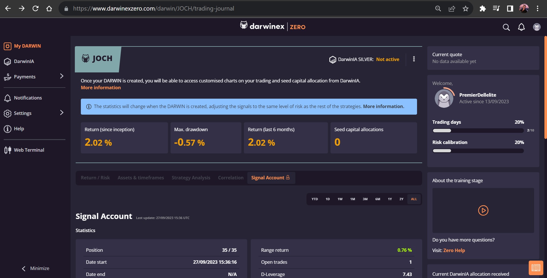 Voici donc ce nouveau compte, en espérant que mes calculs sont bons cette fois : https://www.darwinexzero.com/fr/darwin/ ... ng-journal