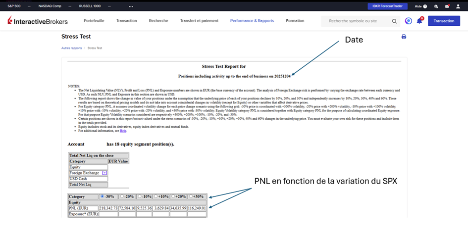 Le graphique ci-joint vient de l’outil de stress d’Interactive Brokers (Vol. Coord.) :