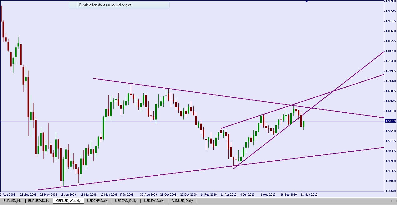 GBP/USD propose aussi une configuration de pullback intéressante à moyen terme, ici d'après une étude en graphique hebdomadaire.