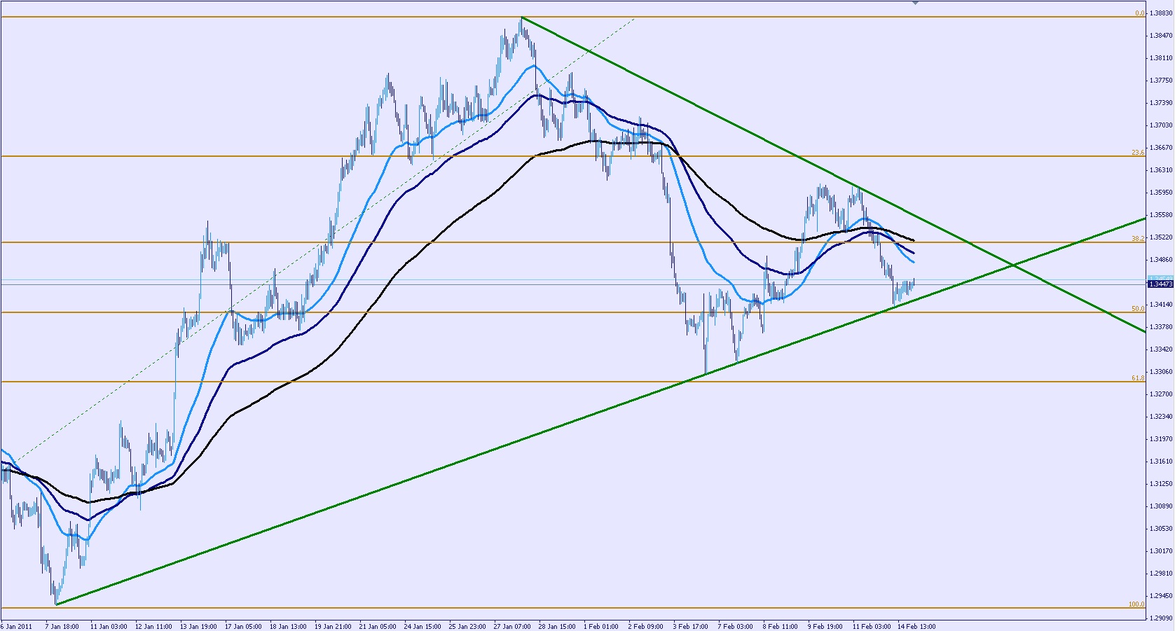 On a un biseau baissier qui semble se dessiner.