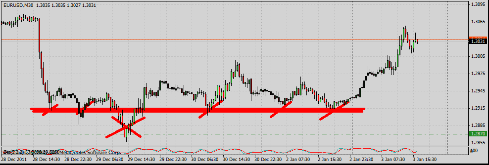 1.2870/1.2900 support LT important. A CT, on a longuement travaillé ce support qui a failli une fois sans que les baissier ne puissent engager la continuité. Meme si la tendance reste baissière, il était préférable à mon sens de se positionner long sur ce support. Je ne l'ai pas tradé sur l EURUSD, mais j'ai fait une belle opération sur le cable ce jour, dans le meme contexte: support LT a 1.5400/1.5450. A CT un beau support a 1.5500. A bientot!