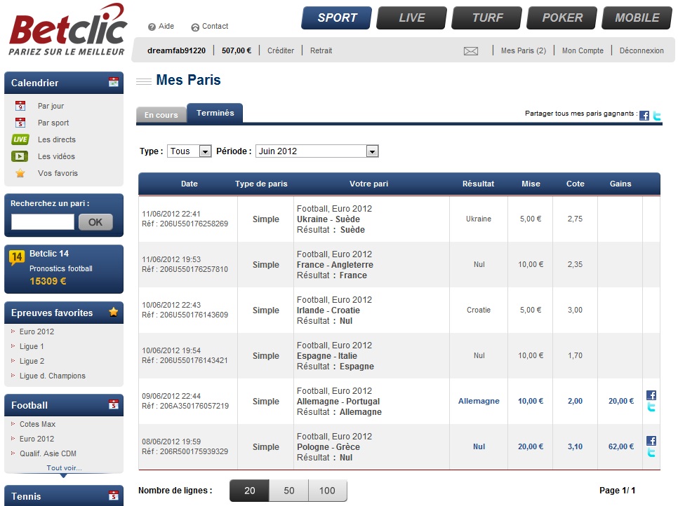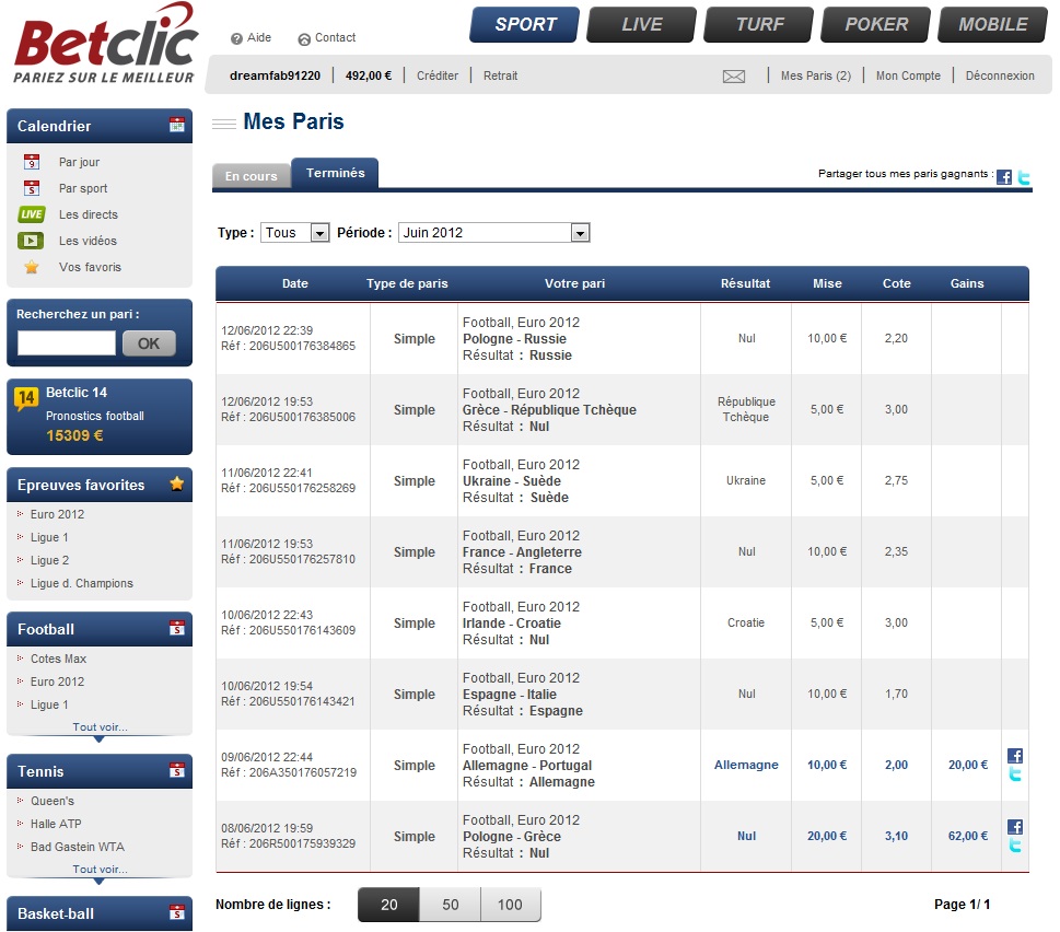 Et pourtant je reste positif de 7€ depuis la compétition avec seulement 2 victoires pour 6 défaites.
