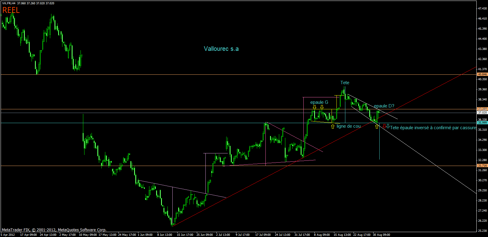 bon moi qui ne fesait que l'eurusd, je me lance dans la recherche de figure chartiste sur n'import quel valeur. voici ma recherche rapide sur 4 actions francaises prise au hasard. on trouve la haussie des chose interressante regardez..