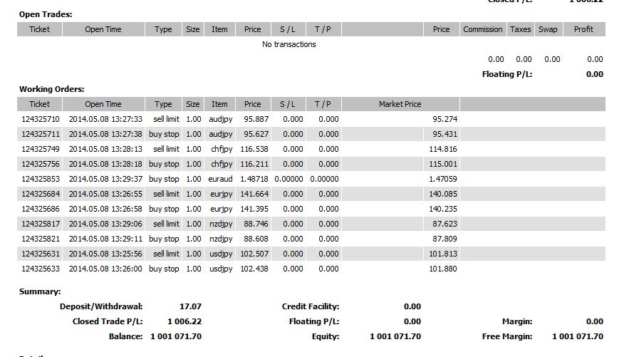 pour cette strat pas de pyramidage et de martingale. Les ordres en attente qui n'ont pas été exécuté sur leur cessions seront annulé.