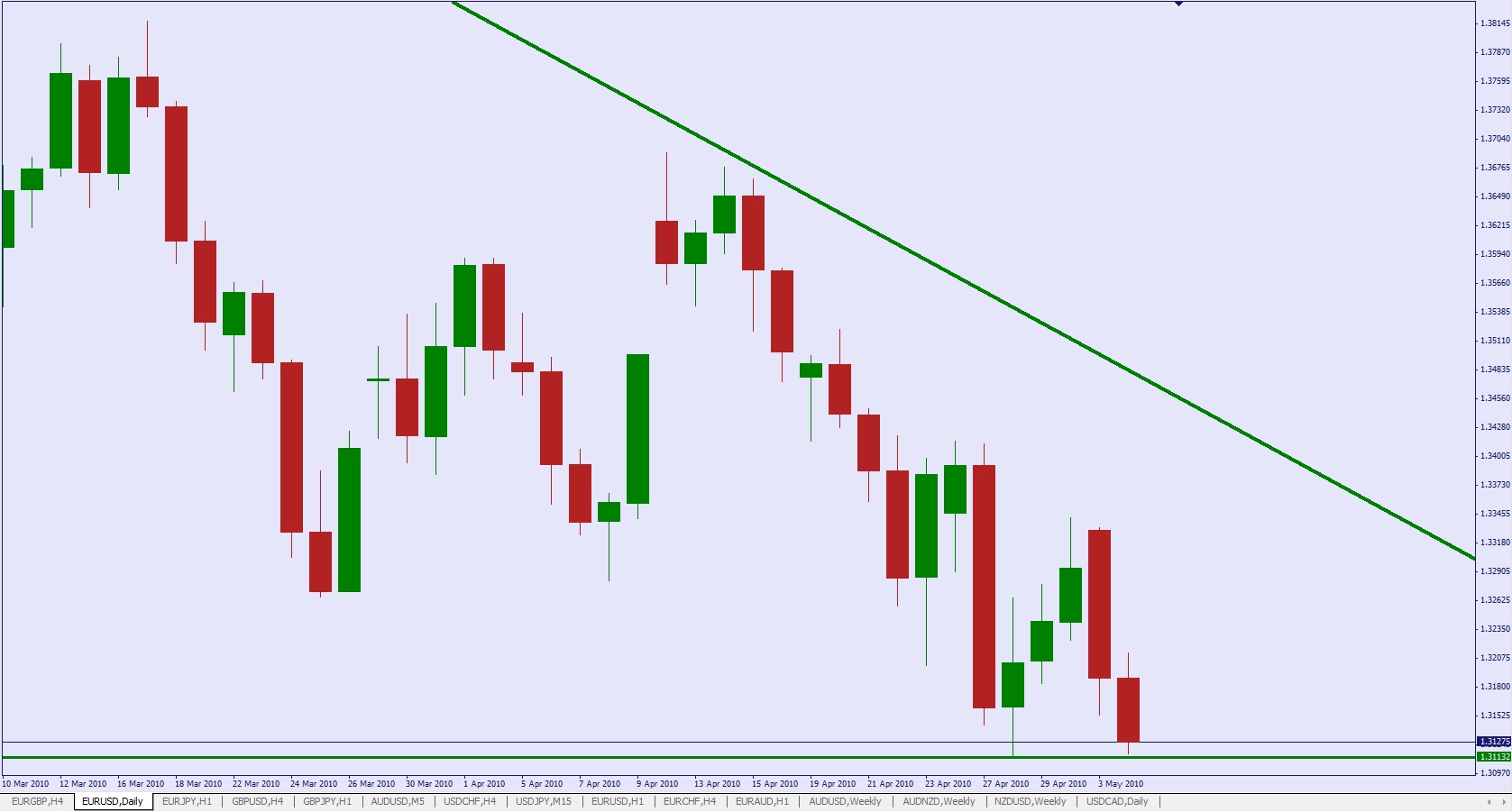 J'ai le plaisir de vous présentez, mon analyse graphique pour la paire EURO/USD sur UT Daily, semaine du 19/04/2010 au 23/04/2010.
