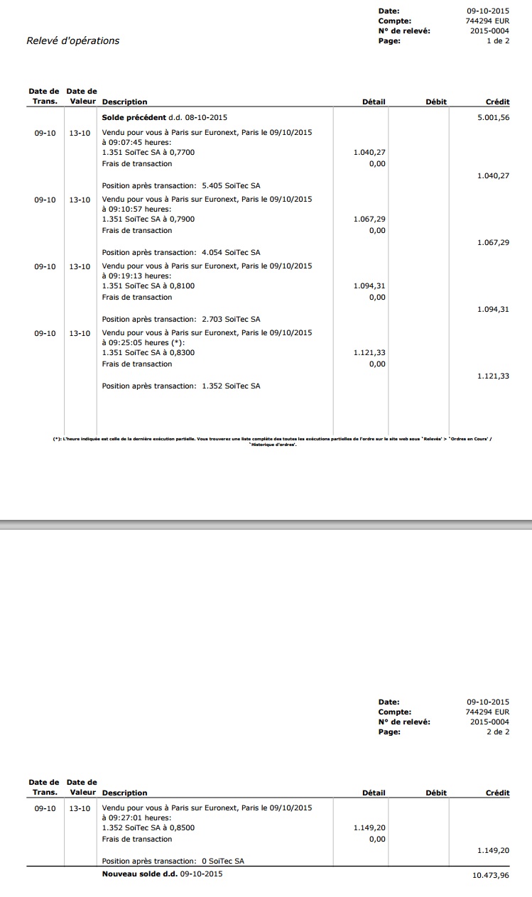 Un peu de profit sur les deux achats d'hier, sans plus, le compte affiche actuellement 10 233€.