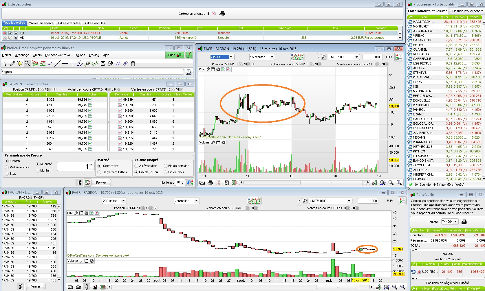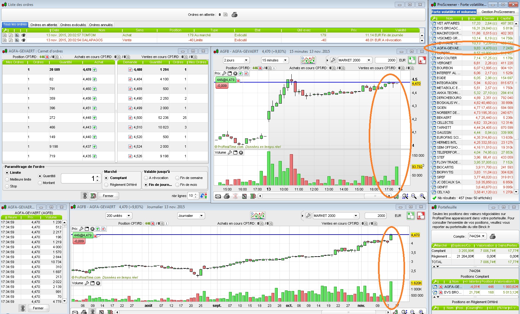 Ce jour avait bien commencé suite à l'achat de FAGRON hier, qui a d’abord bien performé avec +4% au maximum, permettant d'atteindre deux objectifs.
