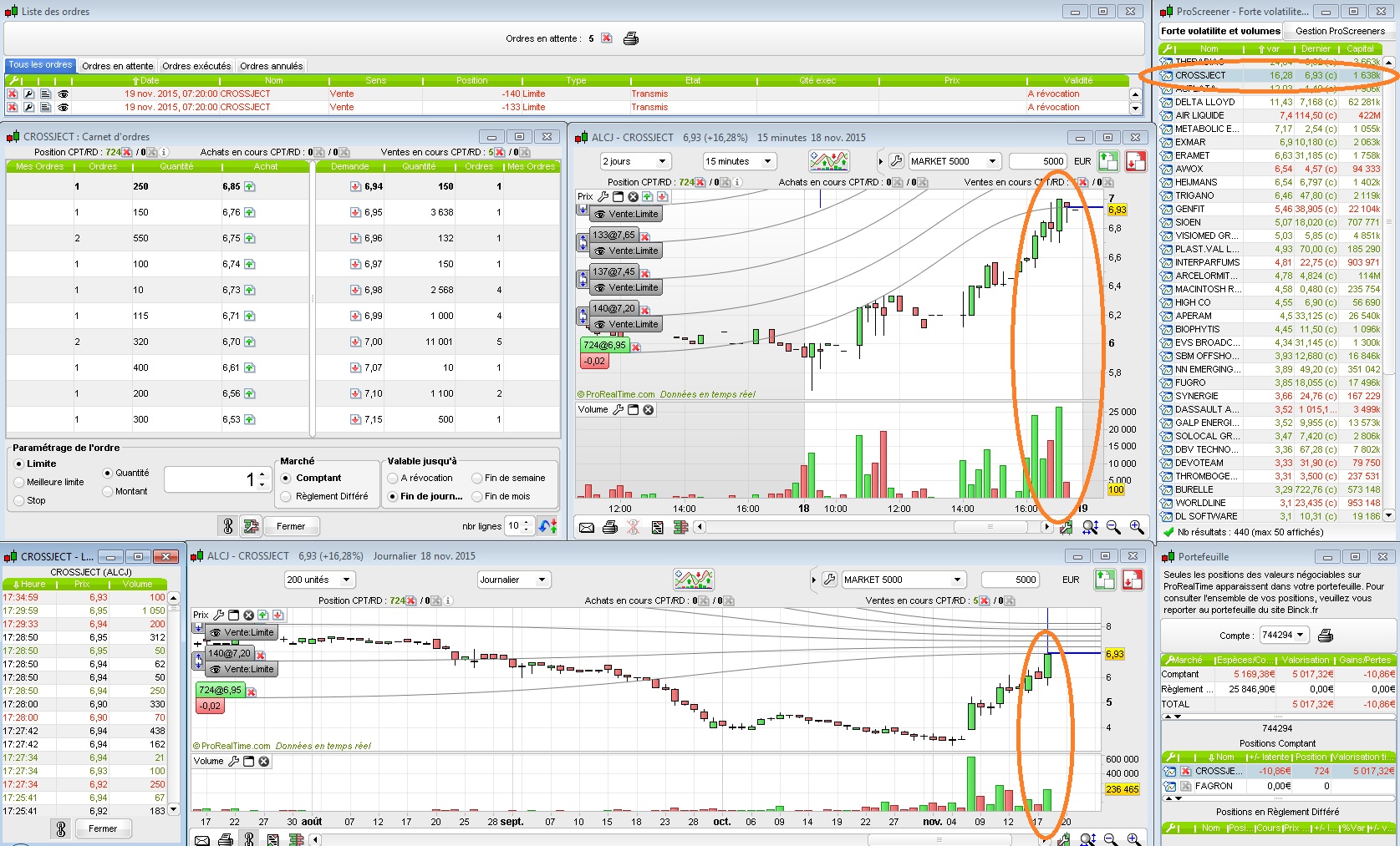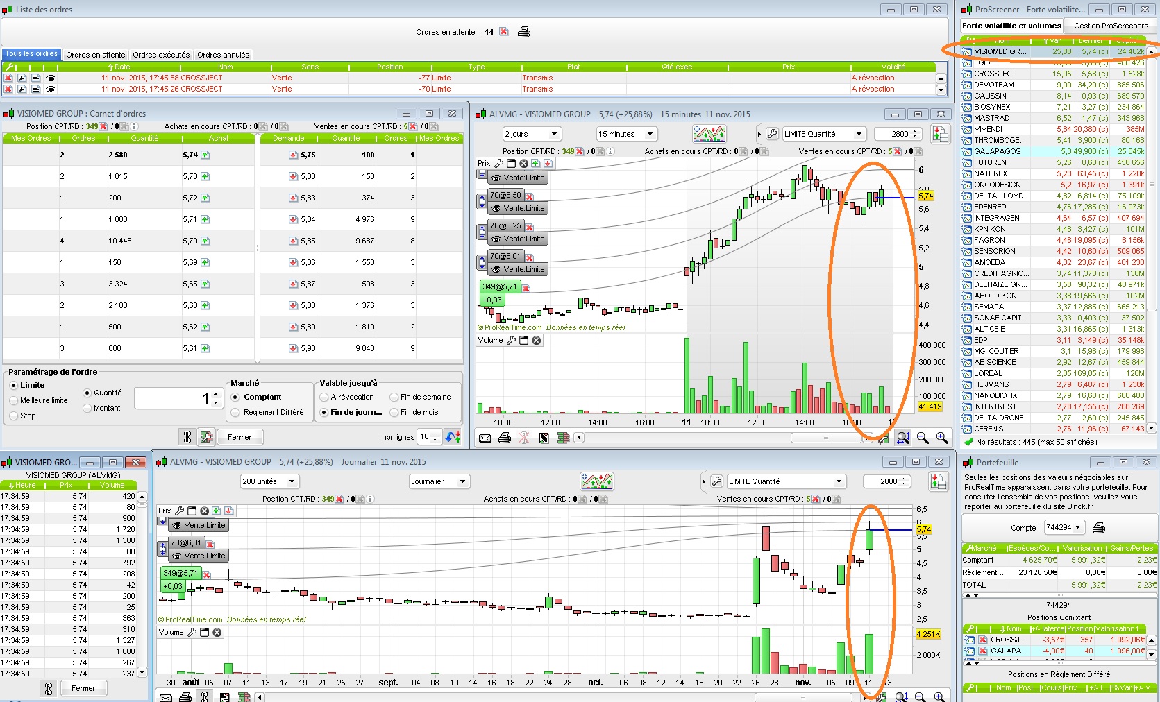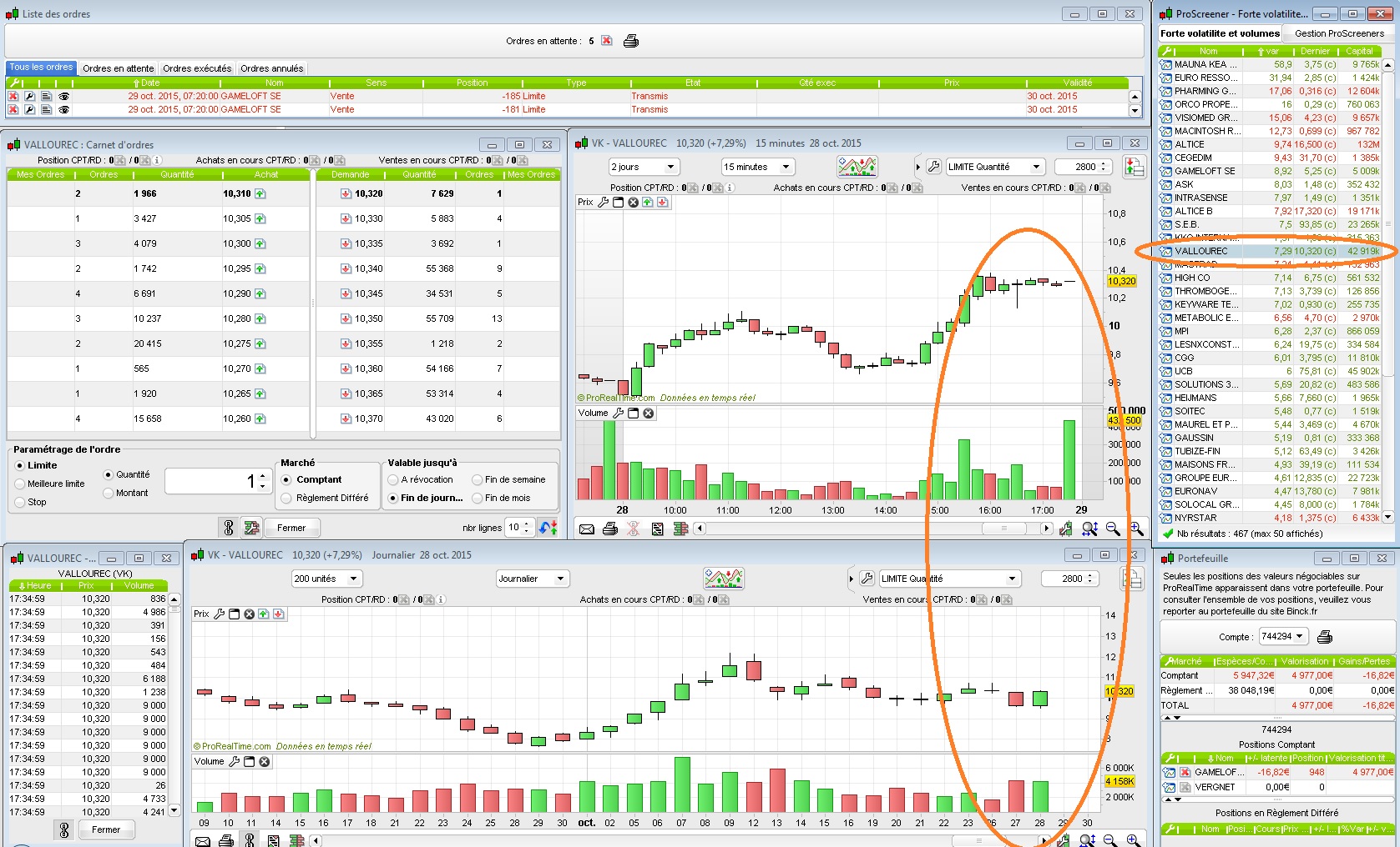 En 15 minutes, on a eu un bel engouement en fin de séance avec une poussée haussière dans des volumes étoffés: