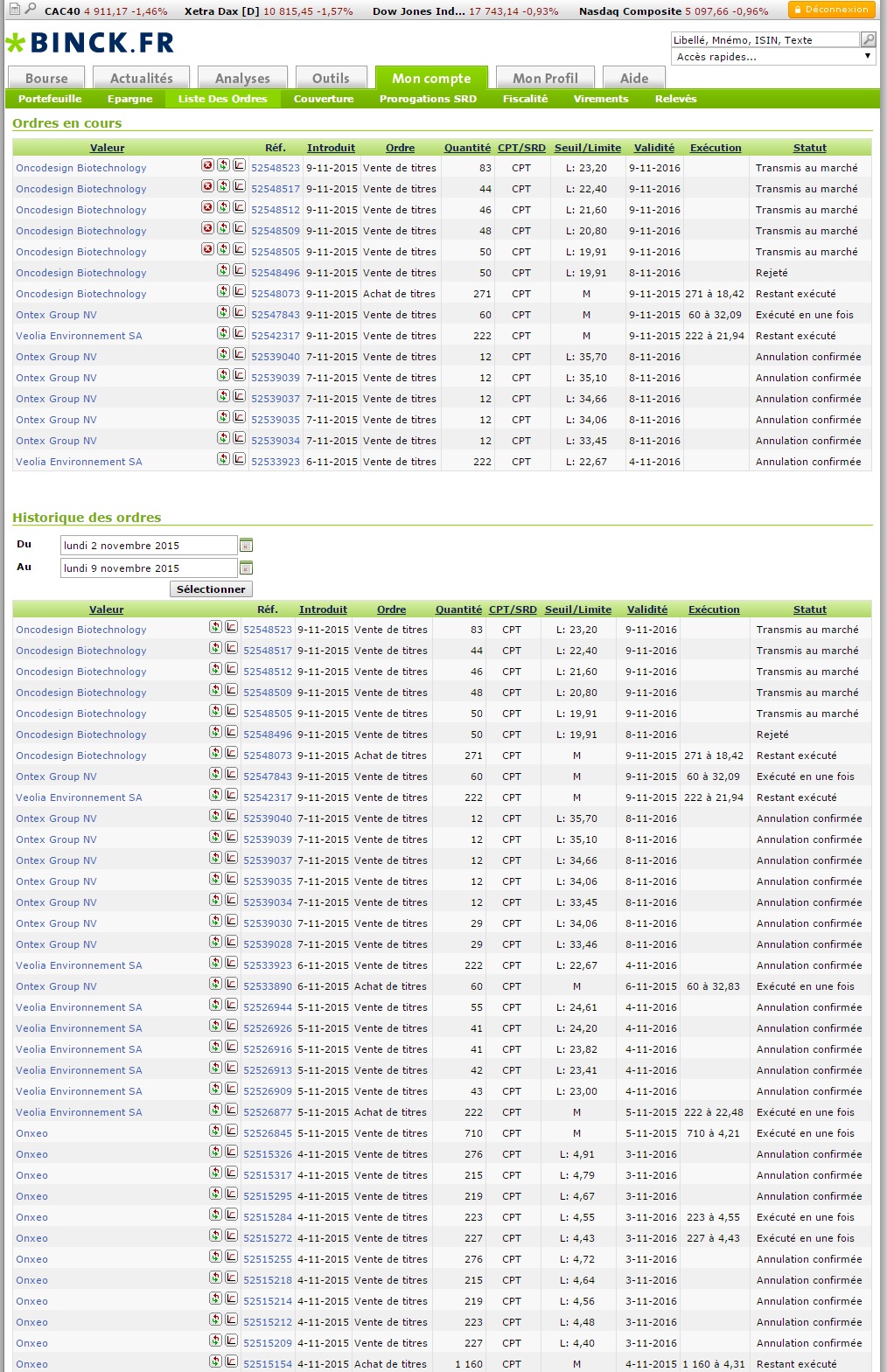 Depuis jeudi dernier je trade les actions sur un compte titres Binck.