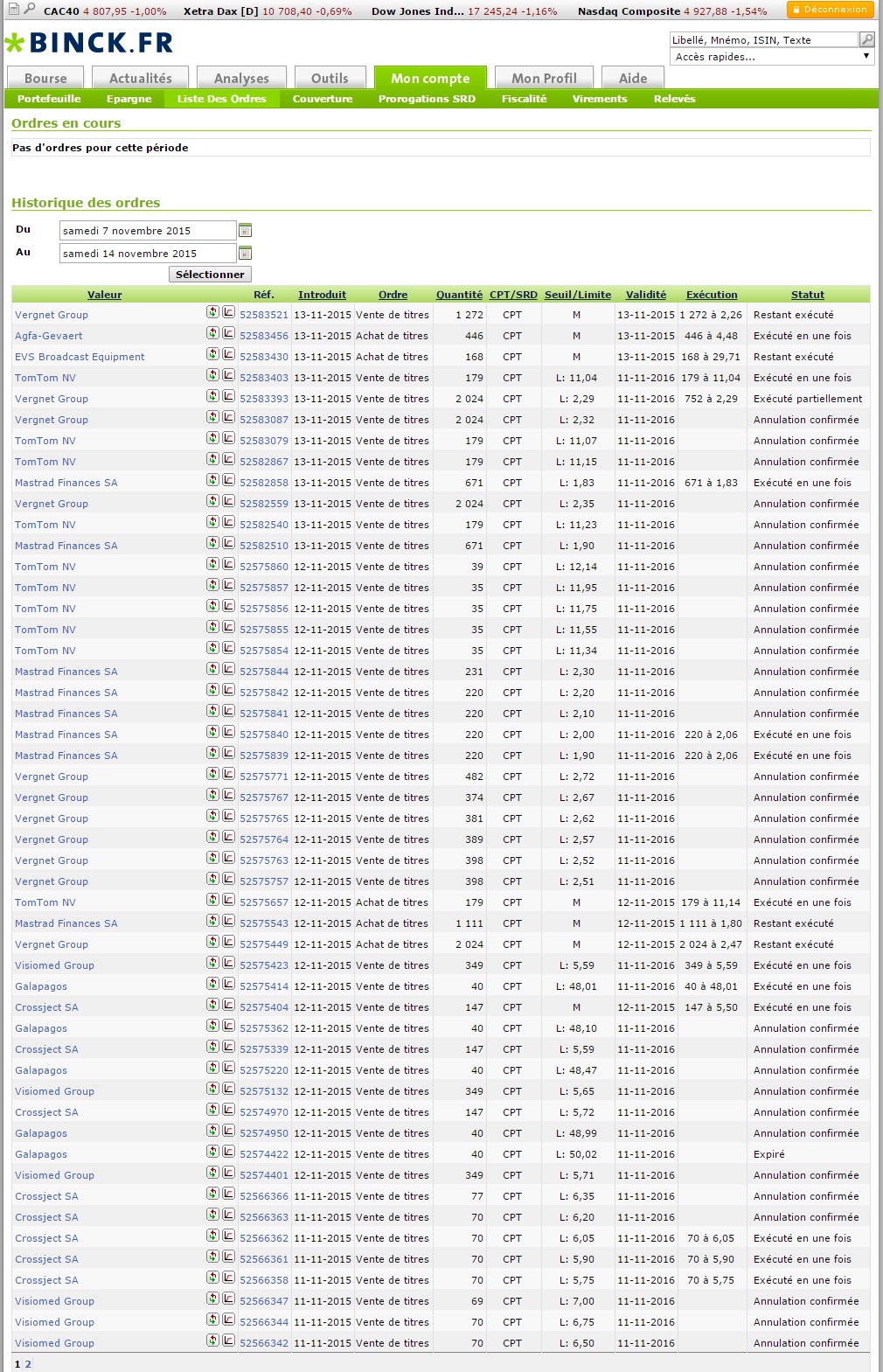Concernant les derniers jours lors desquels je n'ai pas fait de point, voici la liste des ordres passés: