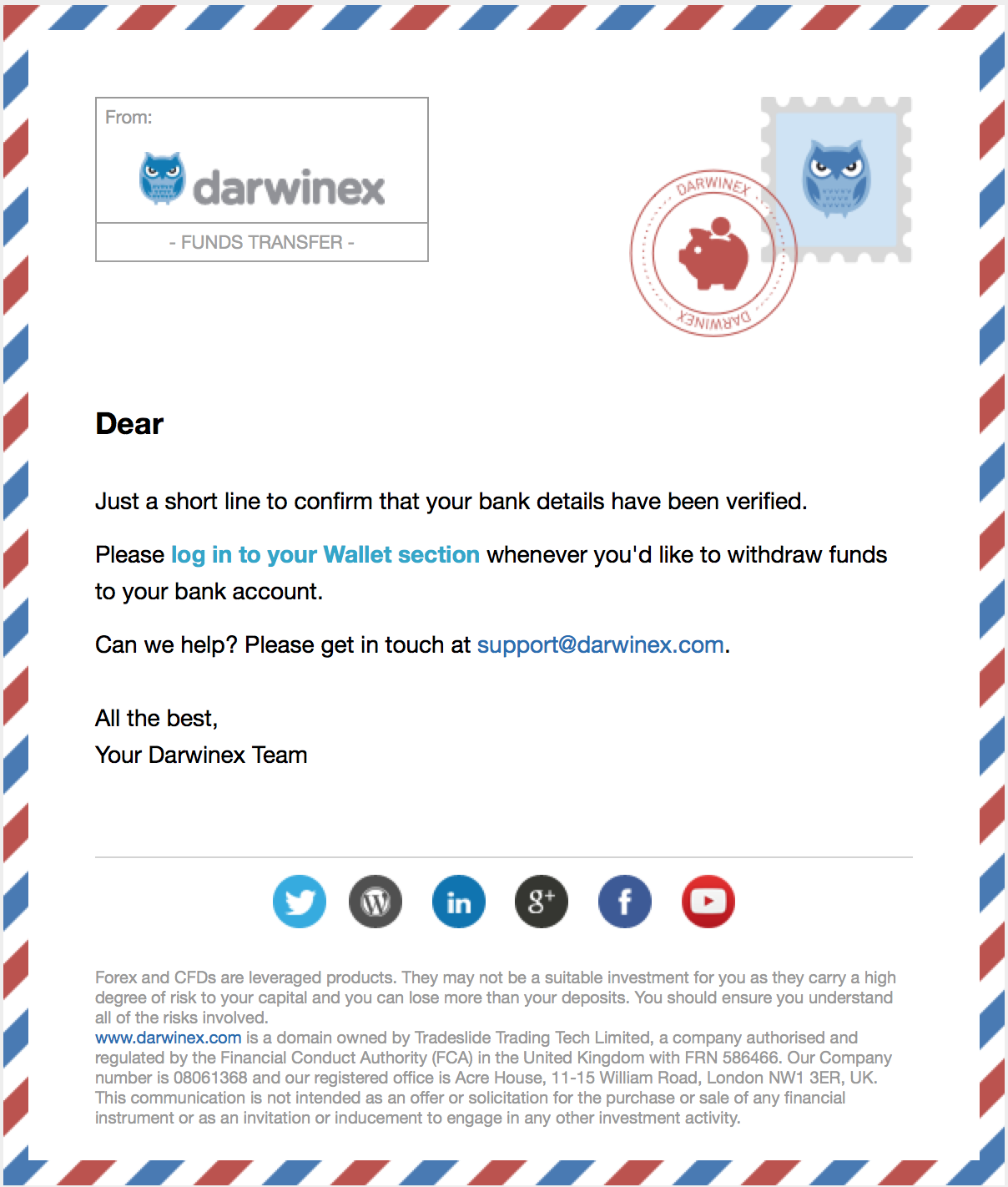 Or avec Darwinex, que ce soit pour le dépôt ou le retrait, on parle de quelques heures !