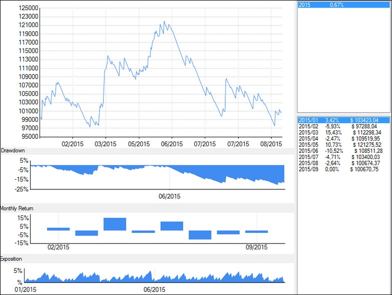 Il faut noter un petit écart de performance entre le backtest de 2015 et celui depuis 2010. Cet écart est du aux positions prises fin 2014 et débouclées en 2015.