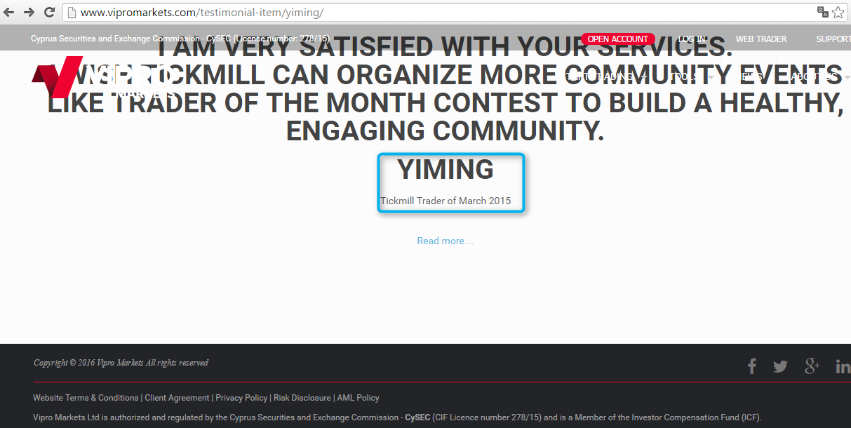 Si sur leur site il était indiqué que "Vipro Markets is a White Label of Tickmill" comme les brokers transparent devraient le faire, il n'y avait rien à dire sur une démarche honnête, claire.