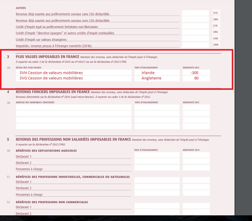 Ah oui, je n'avais pas fait attention, tu as deux pays différents. Alors, oui, il doit falloir faire le détail sur la 2047, mais un global sur la principale.Verbal Kint a écrit :Mais j'ai fait des plus values disons en Angleterre et des moins values en Irlande.