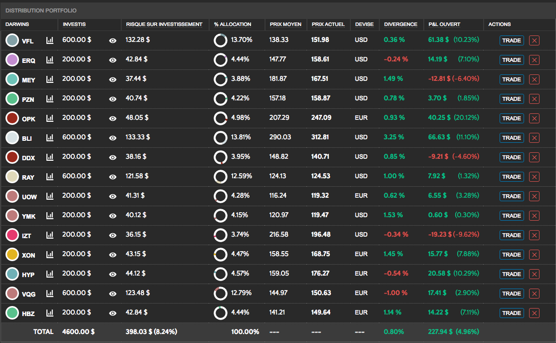 Je suis le premier investisseur sur ce Darwin ! Ceci dit pour illustrer le fait qu'il y a pas mal de travail de recherche dans la gestion de mon portefeuille.