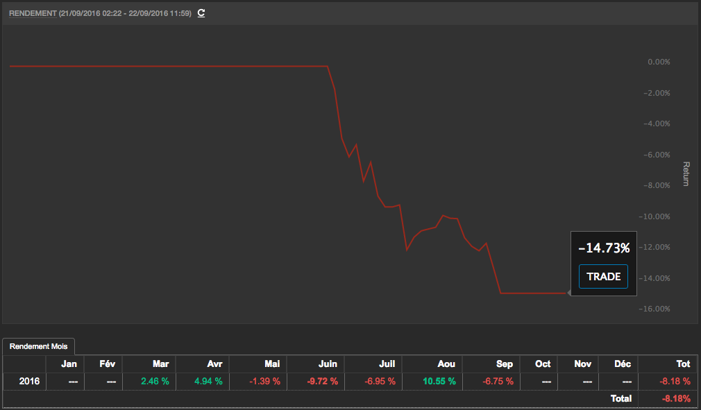 Cela me fait mal de retourner le couteau dans la plaie, mais soyons précis, c'est une taule à -14.73 %. Et c'est -14.73 % au cours de 109,2 %, donc cela pèse lourd.