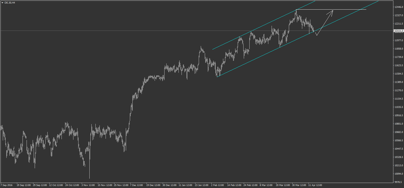 sur le marché du dax, il y a un canal haussier, et on revient sur le support. je pense qu'on va casser le support juste un peu avant de réintégrer le canal et de repartir à la hausse, mais ce n'est qu'un avis