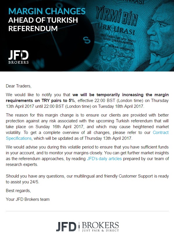 Par rapport au référendum de samedi en Turquie, ActivTrades augmente aussi les marges requises pour trader les paires en TRY: