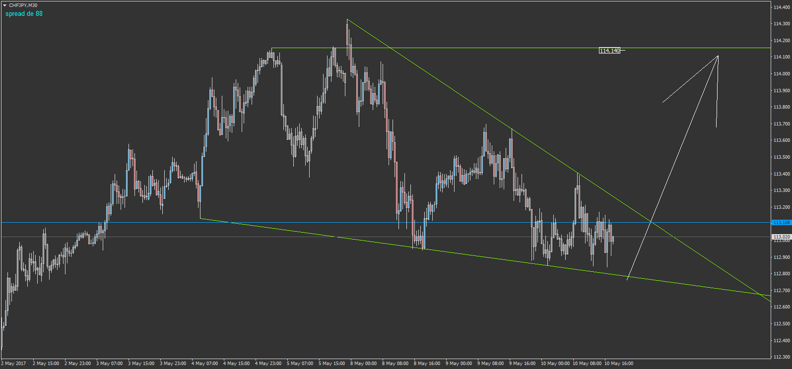 sur le CHFJPY y a un biseau ou on a un objectif à réduire à 114.140