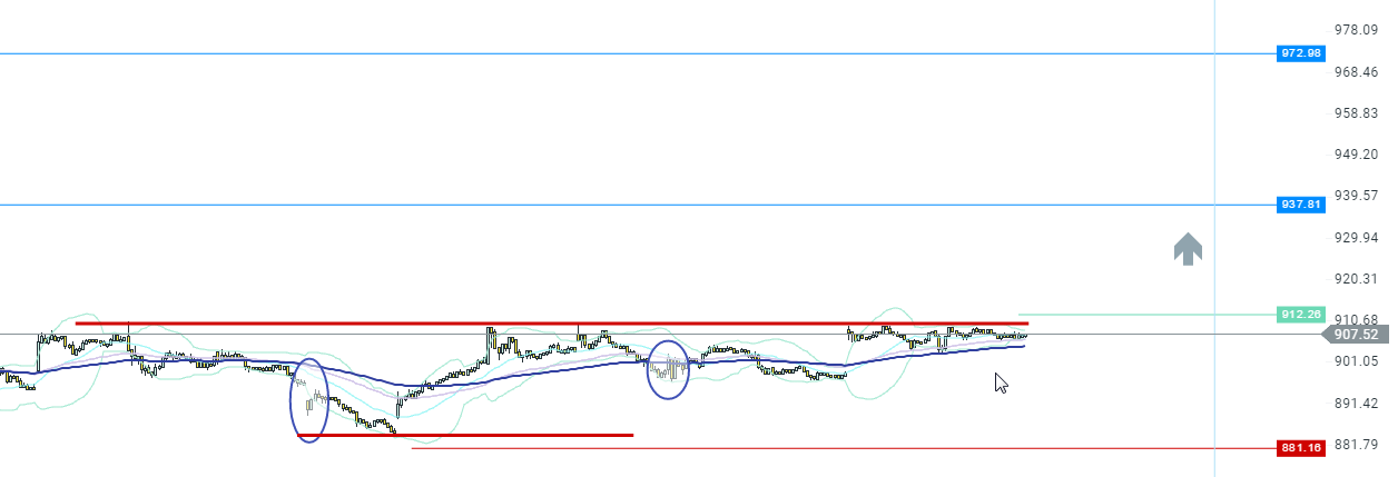 Pour l'instant je ne remonte pas le stop loss pas avant que le niveau 922,43 soit dépassé.