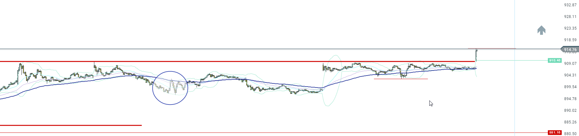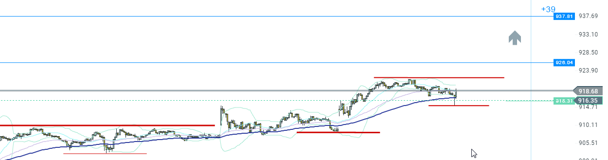 le cours a commencé en gap haussier bien au dessus de mon entrée niveau 916.31
