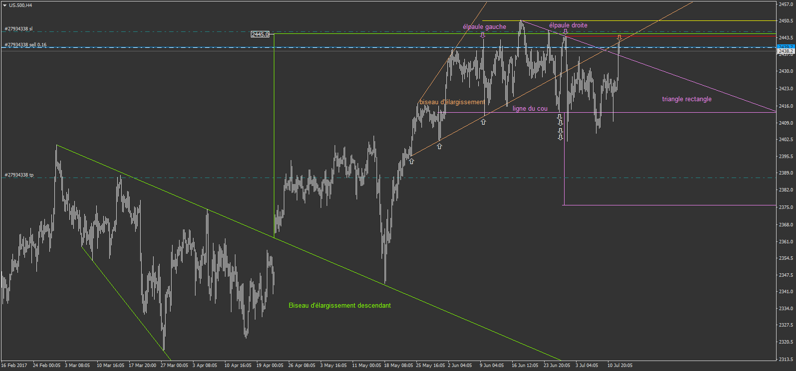 le biseau est toujours en action. remarquez sur l'image l'épaule tête épaule matérialisé par ses deux épaules où j'y ai mis les flèche jaune. il s'agit d'un piège. on va retourné au dessus de l'épaule droite qui est la ligne verte.