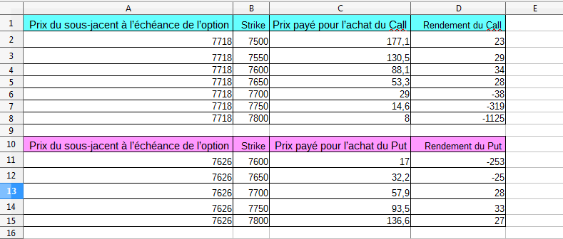 L'image ci dessous montre les différents strike échéance 24 nov. pour apple, call à gauche, put a droite.